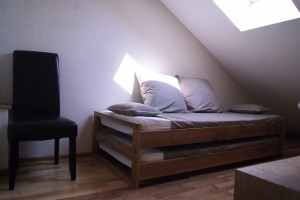 Lits design empilables en chêne massif fabriqués maison. Permettant d’optimiser l’espace en passant d’un lit simple à un lit double ou a deux lits séparés.